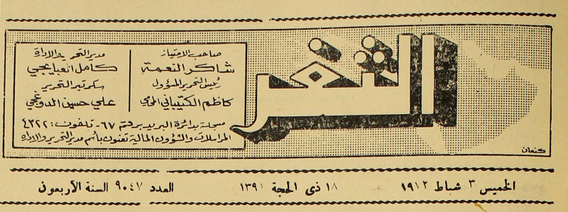 جريدة يومية سياسية عامة = AL-Thaghr : A Daily Newspaper