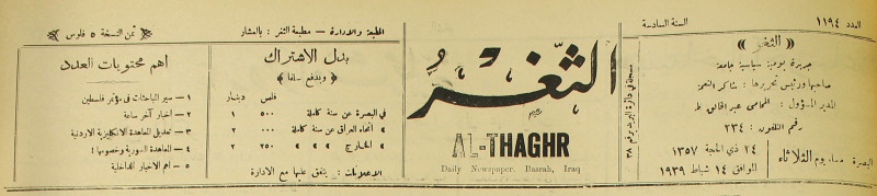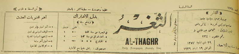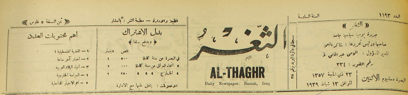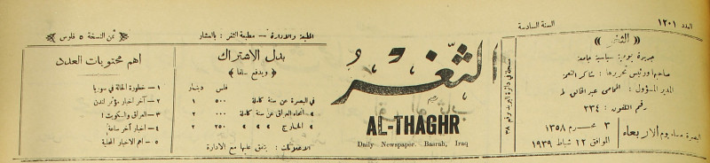 جريدة يومية سياسية عامة = AL-Thaghr : A Daily Newspaper