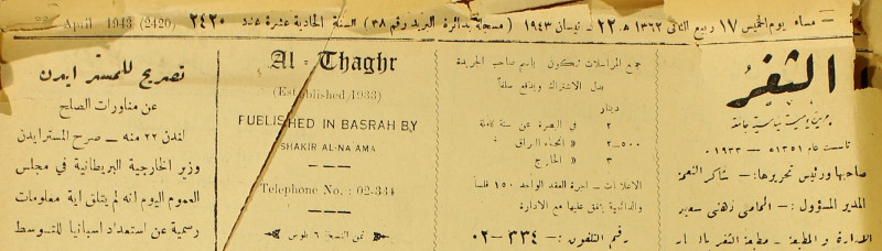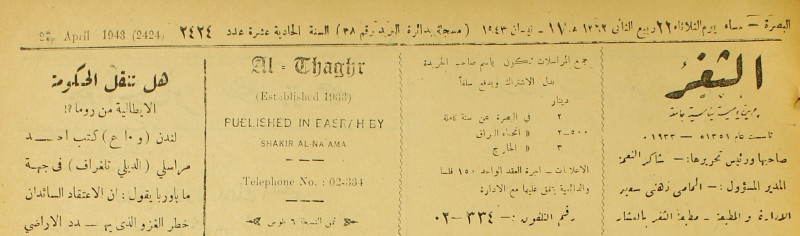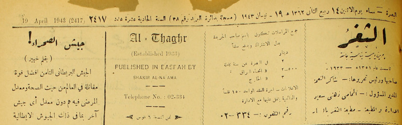 جريدة يومية سياسية عامة = AL-Thaghr : A Daily Newspaper