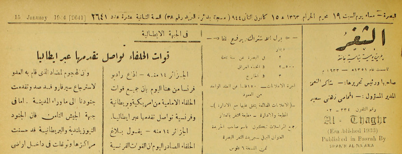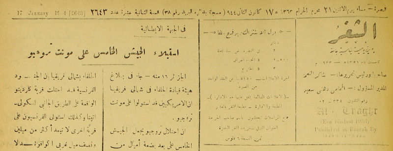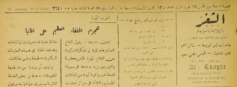 جريدة يومية سياسية عامة = AL-Thaghr : A Daily Newspaper