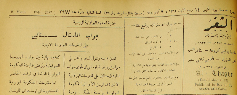 جريدة يومية سياسية عامة = AL-Thaghr : A Daily Newspaper