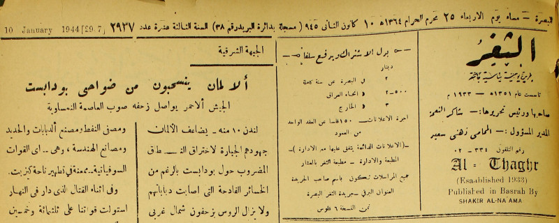 جريدة يومية سياسية عامة = AL-Thaghr : A Daily Newspaper
