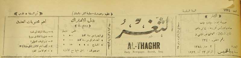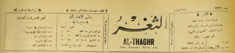 جريدة يومية سياسية عامة = AL-Thaghr : A Daily Newspaper