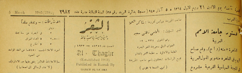 جريدة يومية سياسية عامة = AL-Thaghr : A Daily Newspaper