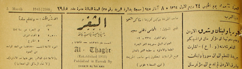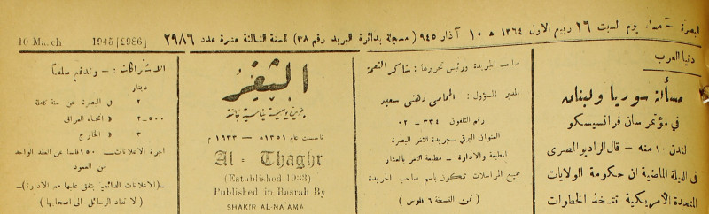 جريدة يومية سياسية عامة = AL-Thaghr : A Daily Newspaper