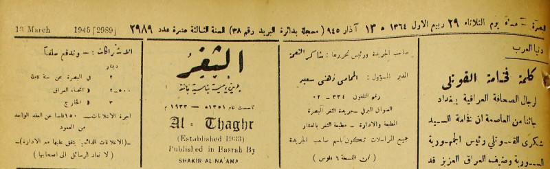 صاحبها ورئيس تحريرها : شاكر النعمة.