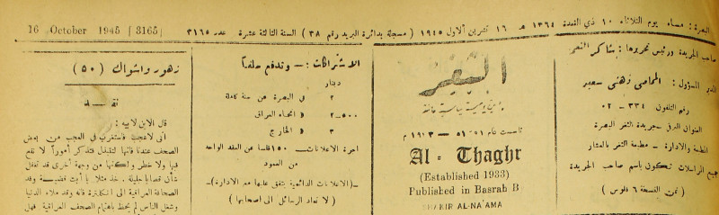 جريدة يومية سياسية عامة = AL-Thaghr : A Daily Newspaper