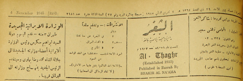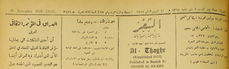 صاحبها ورئيس تحريرها : شاكر النعمة.