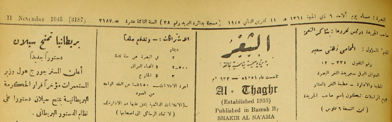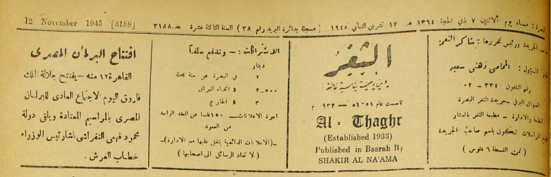جريدة يومية سياسية عامة = AL-Thaghr : A Daily Newspaper