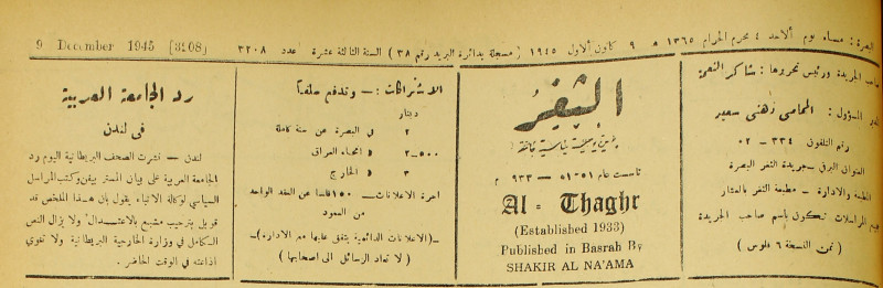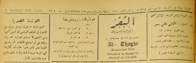 جريدة يومية سياسية عامة = AL-Thaghr : A Daily Newspaper