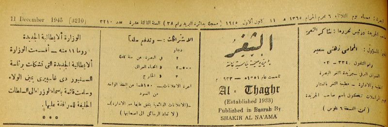 صاحبها ورئيس تحريرها : شاكر النعمة.
