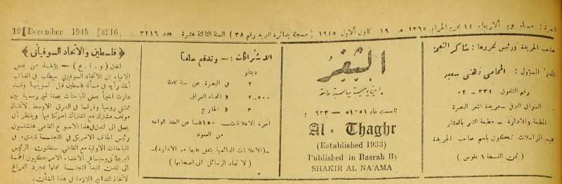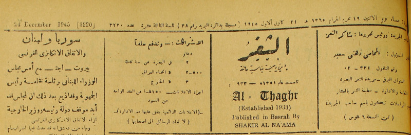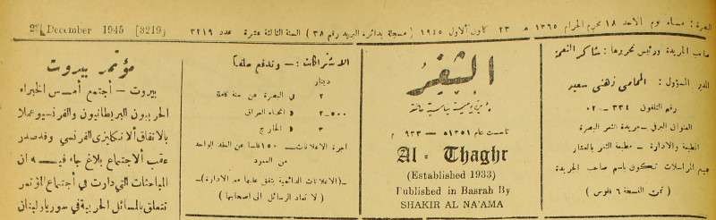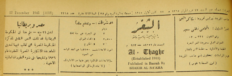 جريدة يومية سياسية عامة = AL-Thaghr : A Daily Newspaper